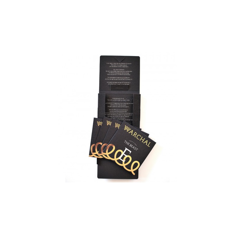 Juego de cuerdas para violín con sonido solístico, máxima proyección y respuesta inmediata. Núcleo sintético, Mi tipo hélice y packaging ecológico.