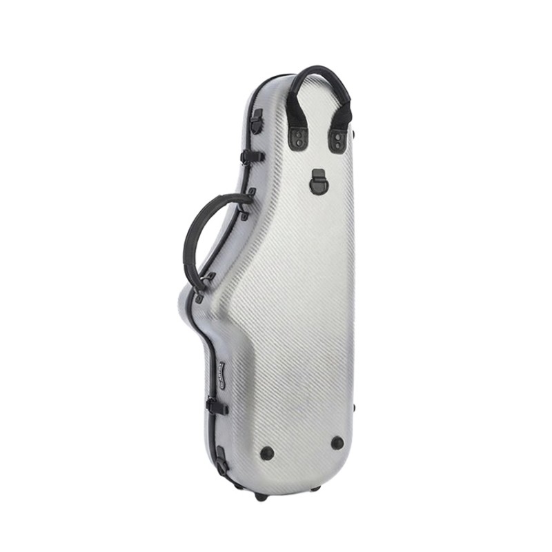 Estuche para saxo alto fabricado con policarbonato con acabado 3D. Consta de asa superior y asa lateral tipo metro, correas tipo mochila y dispone de interior acolchado con 2 compartimentos interiores para boquilla y tudel.