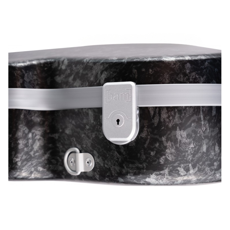 Estuche para violín que destaca por su diseño con efecto metalizado texturizado. Fabricado con exterior Hightech compuesto por una estructura de triple capa (ABS, espuma Airex y ABS).
