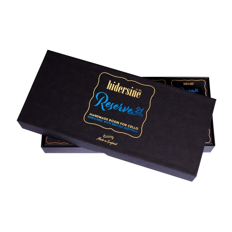 Premium medium-hard rosin for cello, dark in color, made with WW-grade Brazilian resins and British beeswax. It offers high grip, very low dust residue, and a warm sound, ideal for ensemble playing. Handcrafted in England.