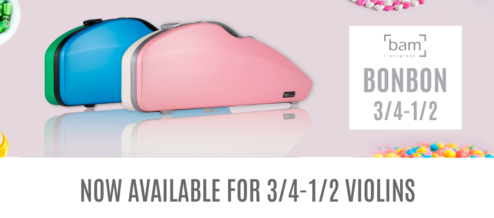 BAM Bonbon Hightech cases are available for 4/4 and 3/4–1/2 violins, as well as for cello.