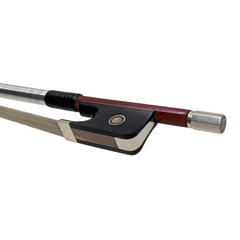 Intermediate-level study bow, made from carefully selected Pernambuco wood, renowned for its strength, elasticity, and rich tonal quality. Inspired by the classic style of Peccatte bows, this model features a round stick which, together with its careful craftsmanship, offers a balanced response and warm sound, ideal for musicians seeking to improve their expressiveness and control.