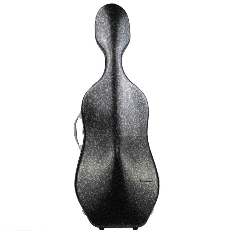 Cello case featuring a design with a textured metallic-effect finish. Made with a Hightech exterior composed of a triple-layer structure (ABS, Airex foam, and ABS).