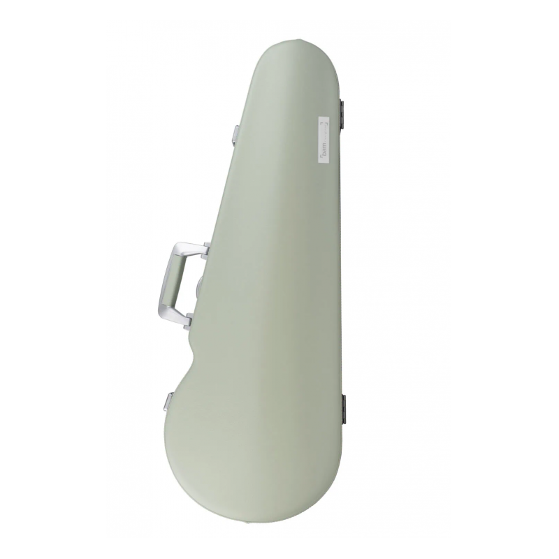 Contoured viola case made with Hightech technology. It is covered with real cow leather on the top shell and it has a brushed aluminum look on the lower shell.