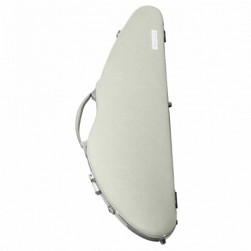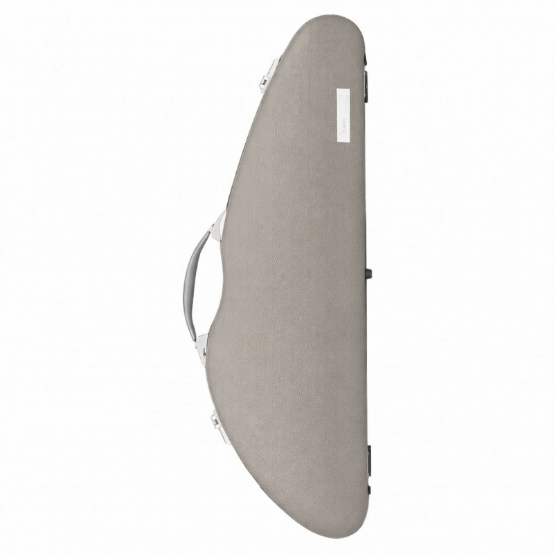 Slim violin case made with Hightech technology. It is covered with real cow leather on the top shell and it has a brushed aluminum look on the lower shell.