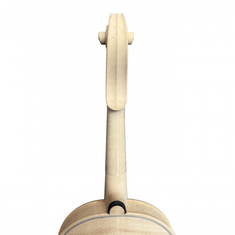 This violin is a faithful reproduction of Antonio Stradivari’s design, crafted from high-quality European wood that delivers a warm sound. It is offered unvarnished.