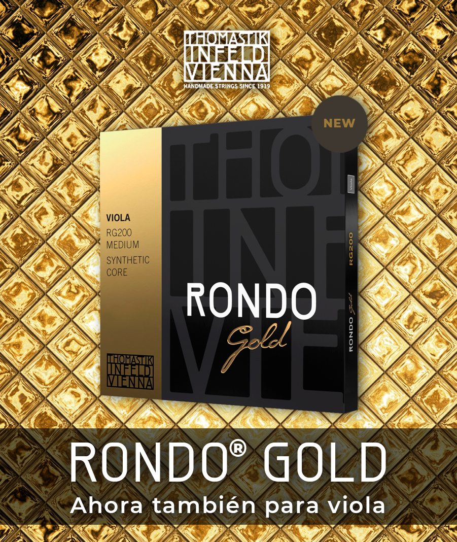 Después del éxito de las cuerdas RONDO® GOLD para violín, Thomastik-Infeld presenta ahora la versión para viola. Estas cuerdas destacan por ofrecer una proyección potente, una respuesta brillante y un equilibrio sonoro con una amplia gama de matices, con un sonido aún más cálido y luminoso en comparación con las cuerdas RONDO® originales.